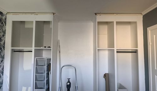 Utgangspunkt før tilpasning og montering av ny skapløsning.